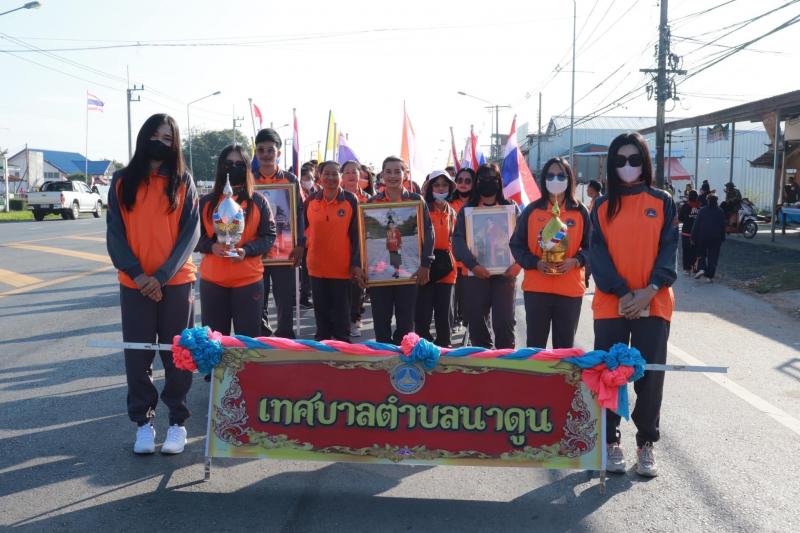 กีฬาจัมปาศรีสัมพันธ์ อำเภอนาดูน ระหว่างวันที่ 13-15 ธันวาคม 2565 เช้าวันนี้ #เทศบาลตำบลนาดูน โดยการนำของนายชัยยุทธ นียากร นายกเทศมนตรีตำบลนาดูน นำทัพกีฬาทีมสีแสด ประกอบด้วย คณะผู้บริหาร สมาชิกสภาฯ ข้าราชการ พนักงาน เจ้าหน้าที่และลูกจ้าง เทศบาลตำบลนาดูน กำนัน ผู้ใหญ่บ้าน ในเขตเทศบาลตำบลนาดูน เข้าร่วมพิธีเปิด และร่วมการแข่งขันกีฬาจัมปาศรีสัมพันธ์ ครั้งที่ 3 ประจำปี 2565 ณ สนามโรงเรียนอนุบาลนครจัมปาศรี ตำบลนาดูน อ.นาดูน จ.มหาสารคาม โดยนายสัมฤทธิ์ หน่อแก้ว นายอำเภอนาดูน เป็นประธานในพิธีเปิด กล่าวรายงานโดย นายชัยยุทธ นียากร นายกเทศมนตรีตำบลนาดูน