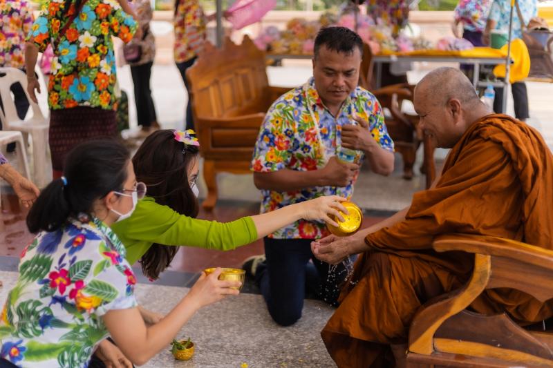 (เจ้าคณะอำเภอนาดูน) และรดน้ำขอพรจากผู้สูงอายุ เพื่อความ