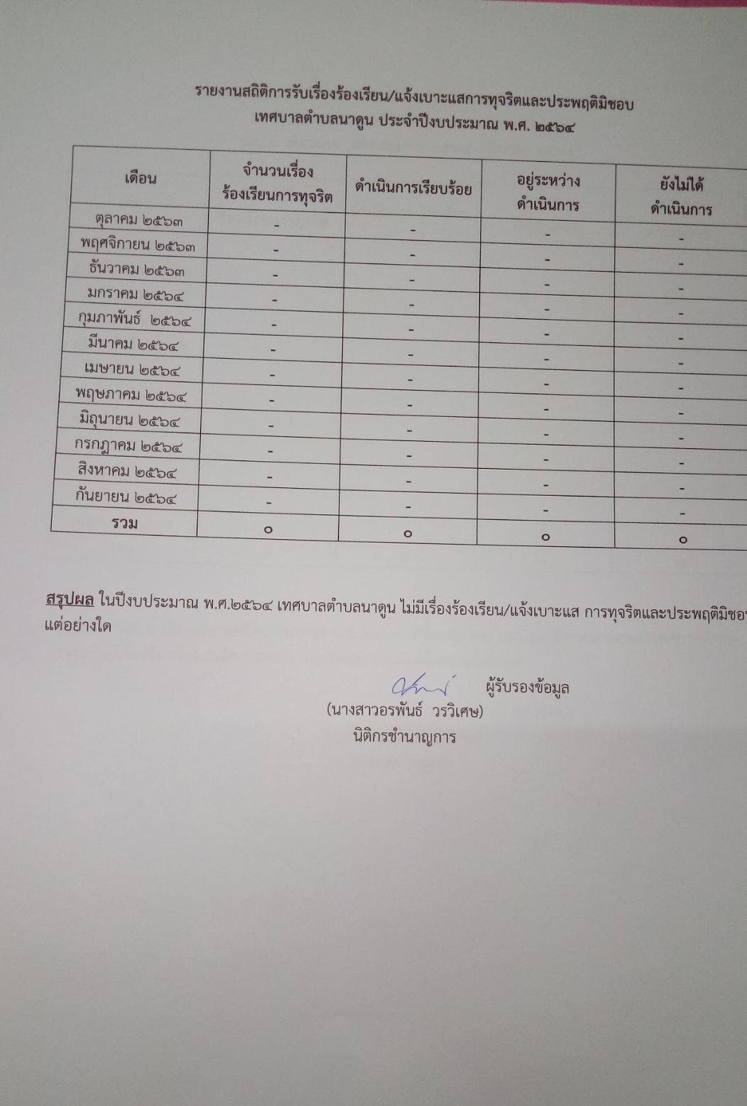 รายงานสถิติการรับเรื่องร้องเรียน/แจ้งเบาะแสการทุจริตและประพฤติมิชอบ ประจำปีงบประมาณ พ.ศ.2564